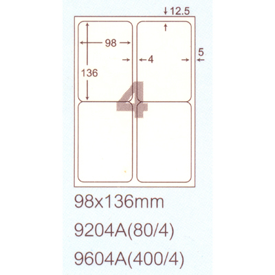 阿波羅 98x136mm 切圓角 NO.9204A 4格 A4 雷射噴墨影印自黏標籤貼紙 20大張入