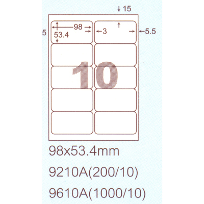 阿波羅 98x53.4mm 切圓角 NO.9210A 10格 A4 雷射噴墨影印自黏標籤貼紙 20大張入