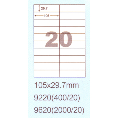 阿波羅 105x29.7mm NO.9620N 20格 A4 雷射噴墨影印自黏標籤貼紙 100大張入