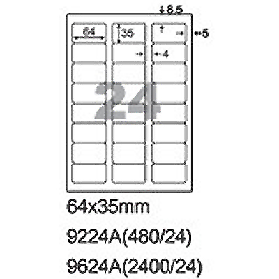 阿波羅 64x35mm 切圓角 NO.9224A 24格 A4 雷射噴墨影印自黏標籤貼紙 20大張入