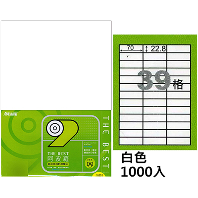 阿波羅 70×22.8mm NO.9239 39格 A4 雷射噴墨影印自黏標籤貼紙 1000大張入