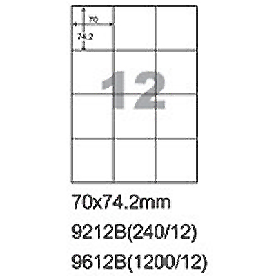 阿波羅 70x74.2mm NO.9612BN 12格 A4 雷射噴墨影印自黏標籤貼紙 100大張入