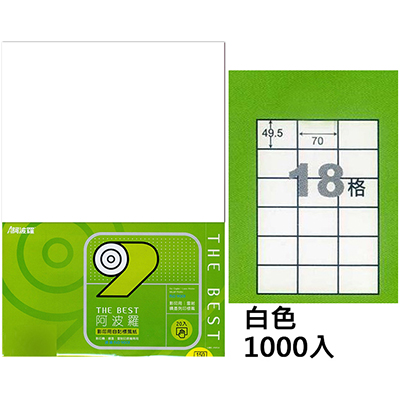 阿波羅 70×49.5mm NO.9618B 18格 A4 雷射噴墨影印自黏標籤貼紙 1000大張入