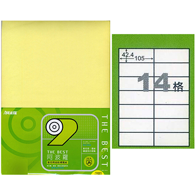 阿波羅 105×42.4mm NO.9614YN 14格 淺黃 A4 雷射噴墨影印自黏標籤貼紙 100大張入