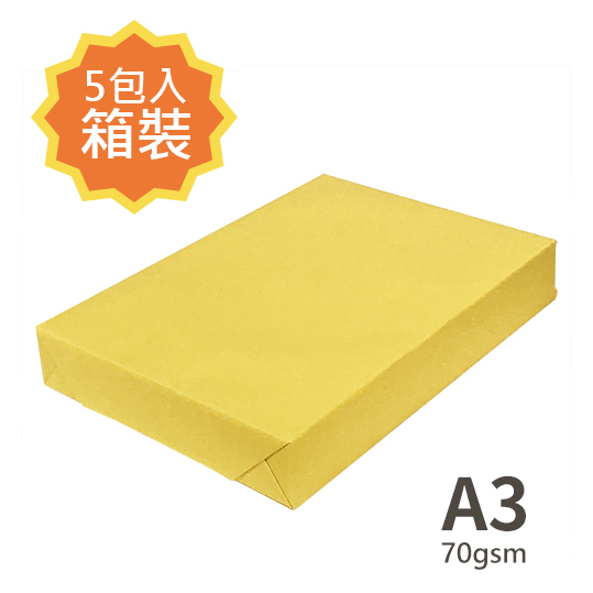 【品牌隨機出貨】 A3 70gsm 雷射噴墨彩色影印紙 金黃 PL200 500張入 X 5包入箱裝
