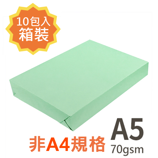 【品牌隨機出貨】 A5 70gsm 雷射噴墨彩色影印紙 淺綠 PL190 500張 為A4尺寸的一半 X 10包入箱裝