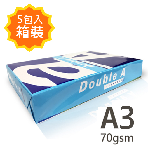 Double A A3 70gsm 雷射噴墨白色影印紙500張入 X 5包入箱裝