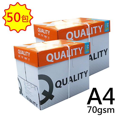 QUALITY A4 70gsm 雷射噴墨白色影印紙500張入 橘包 淨白色 X 50包