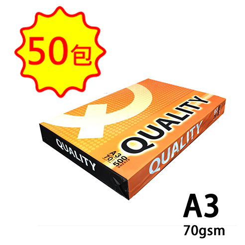 QUALITY A3 70gsm 雷射噴墨白色影印紙500張入 橘包 淨白色 X 50包入