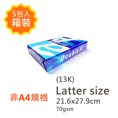Double A Latter size/LS (13K) 21.6x27.9cm 70gsm 雷射噴墨白色影印紙 5包入
