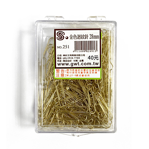文具通 NO.251 金色迴紋針 28mm 230入