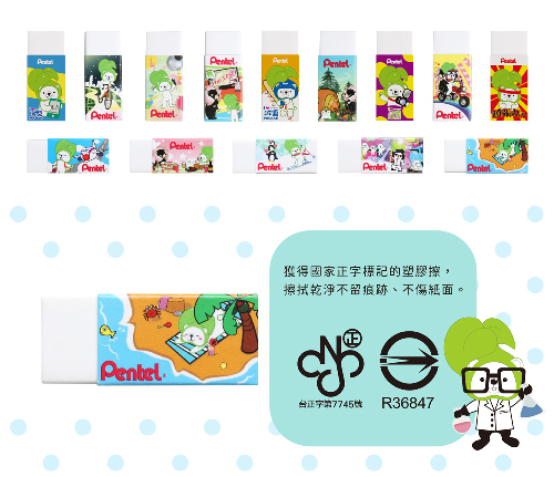 Pentel 飛龍牌 HI-POLYMER ZEH-05PTP 卡通橡皮擦/擦布/塑膠擦 小