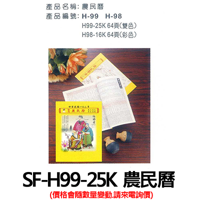 SF-H99-25K 農民曆 (價格會隨數量變動.請來電詢價)