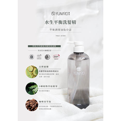 平衡調理油脂分泌萃取天然植物多糖型保濕劑符合四大機構認證白樺蜜糖多糖型保濕劑專利成分強化髮肌角質髮表屏障、維持水潤、提升水感。5種植物萃取精華強化髮肌保護力。咖啡因萃取吸附多餘油脂、平衡調理油脂分泌、使頭皮清爽無負擔。