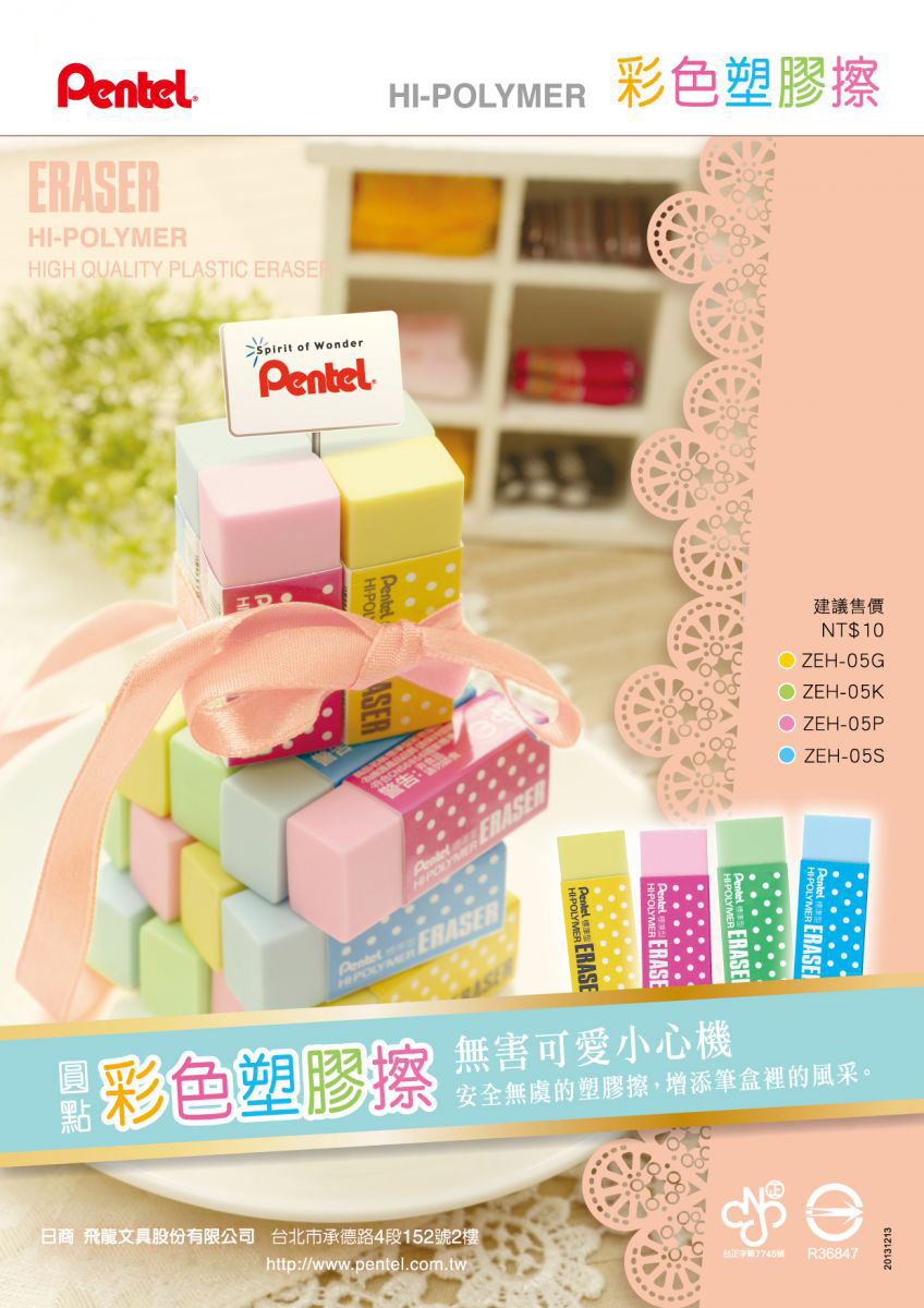 Pentel 飛龍牌 ZEH-05CM HI-POLYMER 彩色標準型橡皮擦/擦布/塑膠擦 小