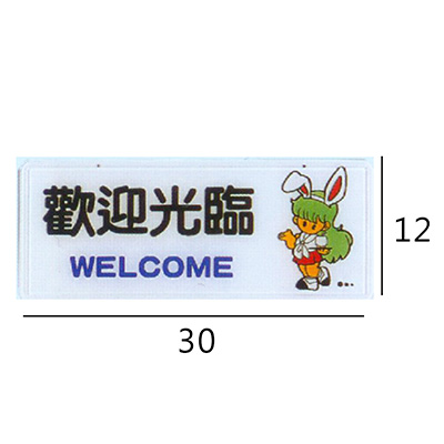 RA-106 歡迎光臨 橫式 12x30cm 彩色壓克力標示牌/指標/標語 附背膠可貼