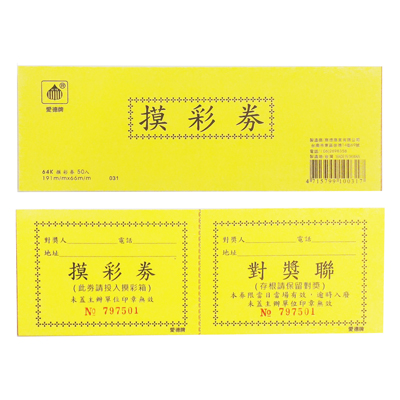 AITE 愛德牌 商德 64K 摸彩券 50張入 約191x66mm 黃 B-031