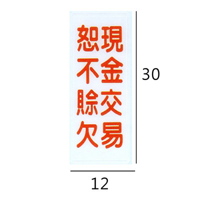 RB-283 現金交易恕不賒欠 直式 12x30cm 壓克力標示牌/指標/標語 附背膠可貼