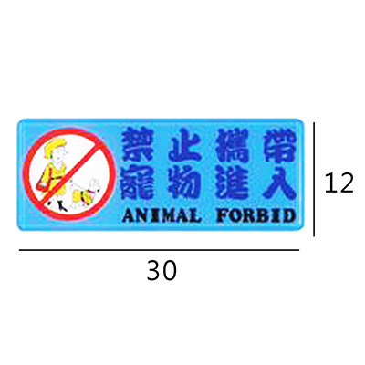 RA-153 禁止攜帶寵物進入 橫式 12x30cm 彩色壓克力標示牌/指標/標語 附背膠可貼