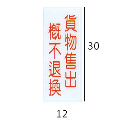 RB-281 貨物售出概不退換 直式 12x30cm 壓克力標示牌/指標/標語 附背膠可貼
