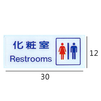RB-253 化粧室/化妝室 男.女 橫式 12x30cm 壓克力標示牌/指標/標語 附背膠可貼