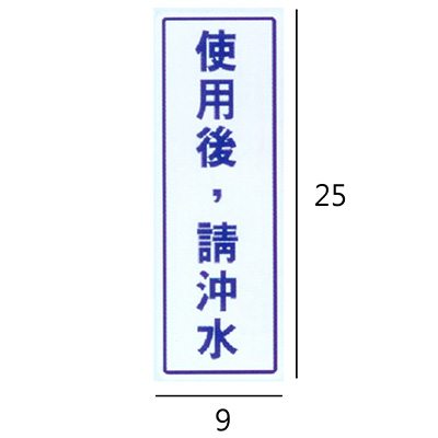RC-274 使用後/請沖水 直式 9x25cm 壓克力標示牌/指標/標語 附背膠可貼