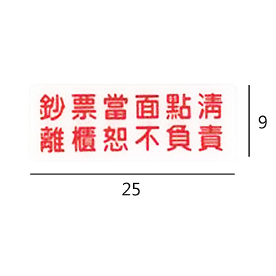 RC-296 鈔票當面點清離櫃恕不負責 橫式 9x25cm 壓克力標示牌/指標/標語 附背膠可貼