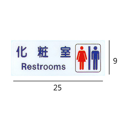 RC-284 化粧室/化妝室 男.女 橫式 9x25cm 壓克力標示牌/指標/標語 附背膠可貼