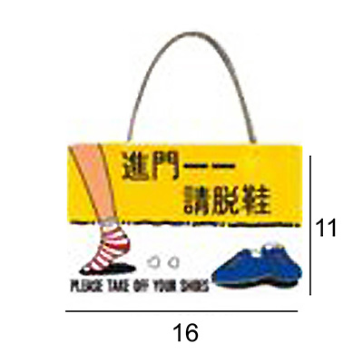 RQ-311 進門請脫鞋 橫式 11x16cm 壓克力標示牌/指標/標語 附鏈條吸盤附背膠可貼