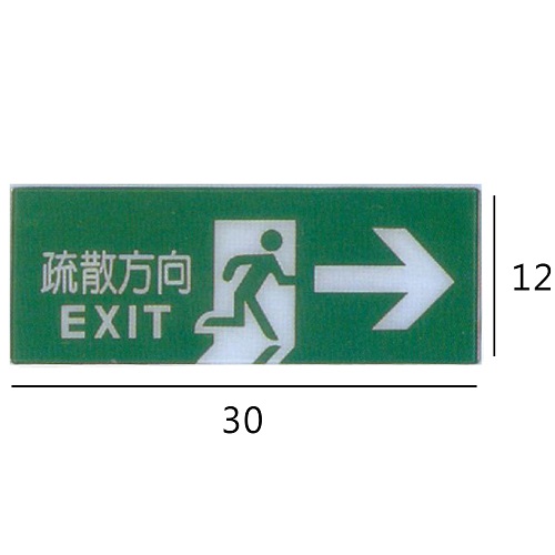 RA-124 疏散方向/EXIT 右箭 橫式 12x30cm 彩色壓克力標示牌/指標/標語 附背膠可貼