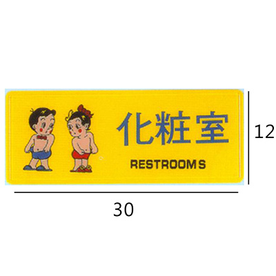 RA-108 化粧室/化妝室 男.女 橫式 12x30cm 彩色壓克力標示牌/指標/標語 附背膠可貼