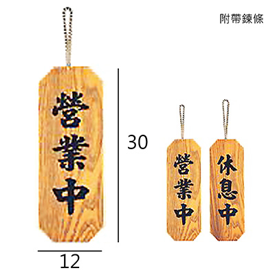 SA-109 營業中.休息中 直式 12x30cm 雙面木紋貼皮標示牌/指標/標語/吊牌 附鏈可掛