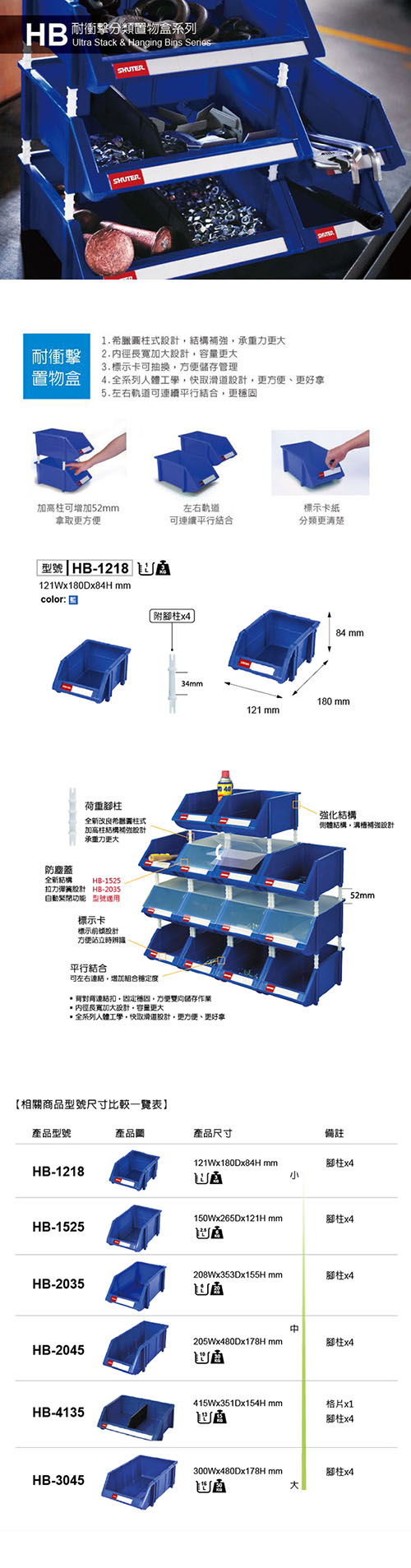 SHUTER 樹德 HB-1218 耐衝整理盒/收納盒 121x180x84mm