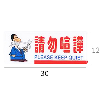 RA-172 請勿喧譁 橫式 12x30cm 彩色壓克力標示牌/指標/標語 附背膠可貼