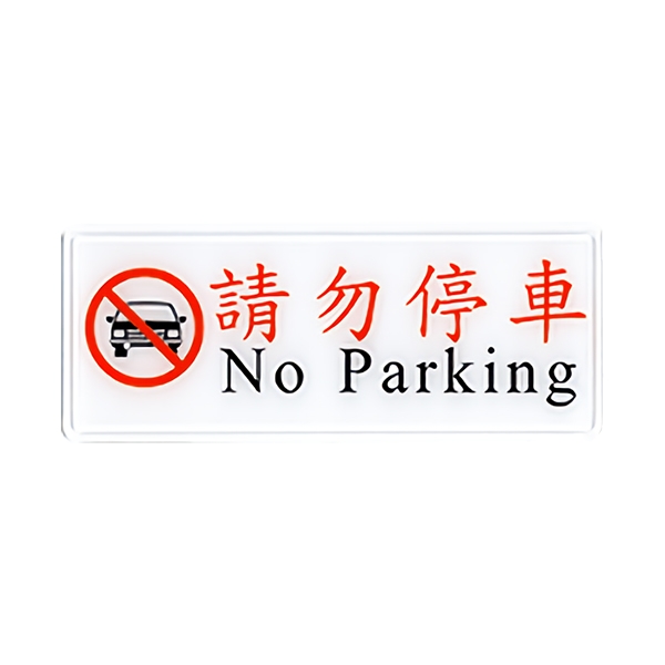 NO.1319 請勿停車 12x30cm 彩色壓克力標示牌/指標/標語 附背膠可貼