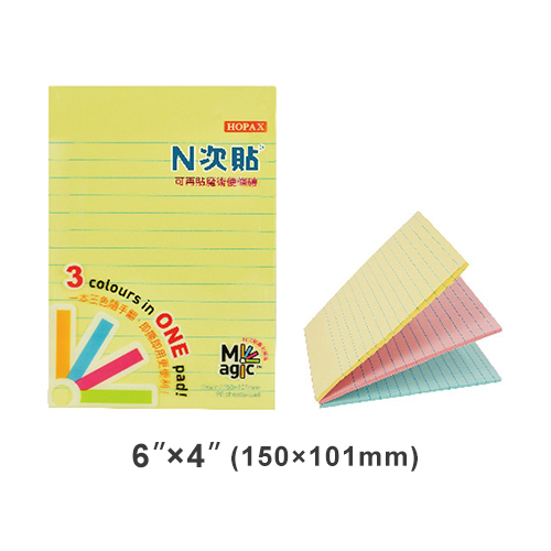 StickN N次貼 6x4 橫線3色便條磚/便條紙/便利貼 150x101mm NO.61334