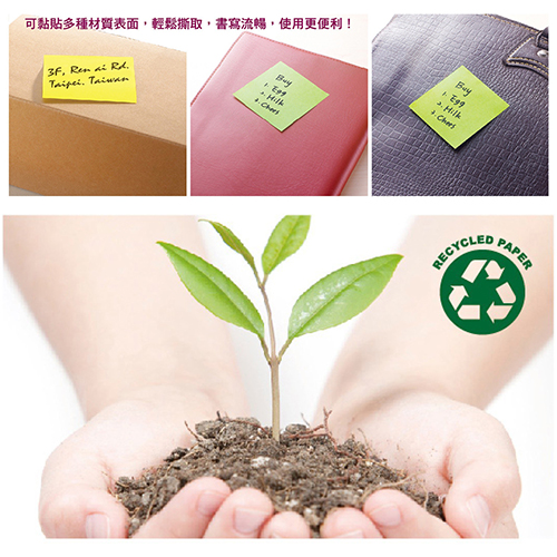 StickN N次貼 3x3 超粘再生紙可再貼便條紙/便利貼 綠 76x76mm 90張入 NO.62727