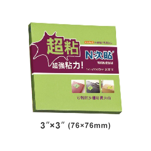 StickN N次貼 3x3 超粘可再貼便條紙/便利貼 螢光綠 76x76mm 90張入 NO.62747