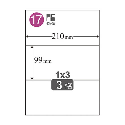 Herwood 鶴屋牌 3格 99x210mm NO.A99210 A4高溫快速三合一雷射噴墨影印自黏標籤貼紙/電腦標籤 20大張入