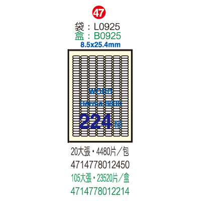 Herwood 鶴屋牌 224格 8.5x25.4mm NO.B0925 A4雷射噴墨影印自黏標籤貼紙/電腦標籤 105大張入