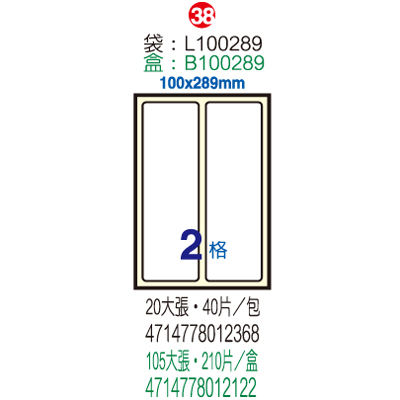 Herwood 鶴屋牌 2格 100x289m NO.B100289 A4雷射噴墨影印自黏標籤貼紙/電腦標籤 105大張入