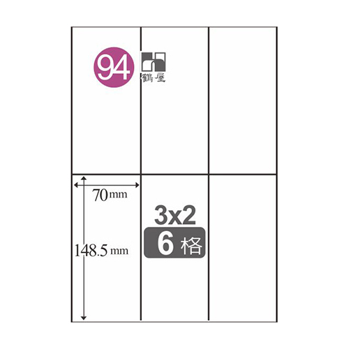 Herwood 鶴屋牌 6格 148.5x70mm NO.B14970 A4雷射噴墨影印自黏標籤貼紙/電腦標籤 105大張入