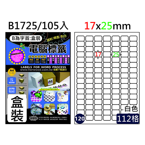 Herwood 鶴屋牌 112格 17x25mm NO.B1725 A4雷射噴墨影印自黏標籤貼紙/電腦標籤 105大張入