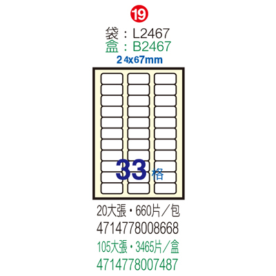 Herwood 鶴屋牌 33格 24x67mm NO.B2467 A4雷射噴墨影印自黏標籤貼紙/電腦標籤 105大張入