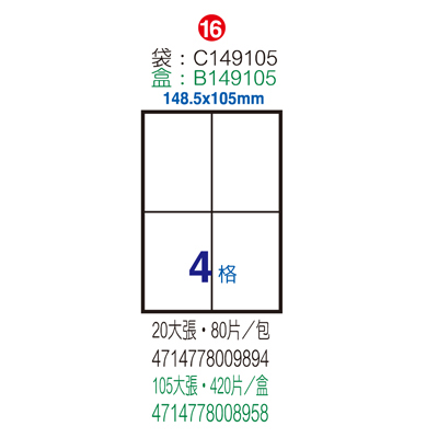 Herwood 鶴屋牌 4格 148.5x105mm NO.C149105(LX) A4雷射噴墨影印自黏標籤貼紙/電腦標籤 1000大張入