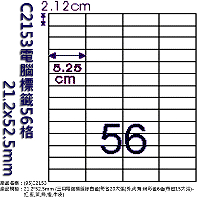 Herwood 鶴屋牌 56格 21.2x52.5mm NO.C2153 A4雷射噴墨影印自黏標籤貼紙/電腦標籤 20大張入