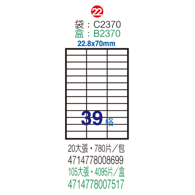 Herwood 鶴屋牌 39格 22.8x70mm NO.C2370(LX) A4雷射噴墨影印自黏標籤貼紙/電腦標籤 1000大張入