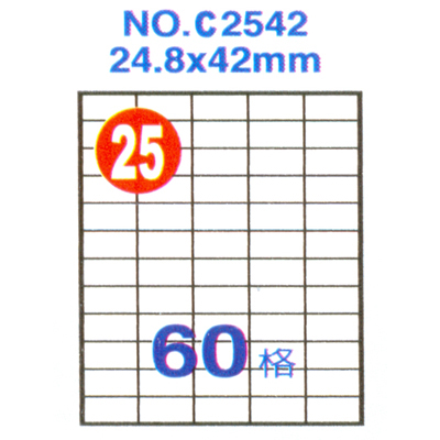 Herwood 鶴屋牌 60格 24.8x42mm NO.C2542 A4雷射噴墨影印自黏標籤貼紙/電腦標籤 20大張入
