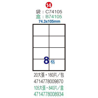 Herwood 鶴屋牌 8格 74x105mm NO.C74105G 粉黃 A4雷射噴墨影印自黏標籤貼紙/電腦標籤 15大張入