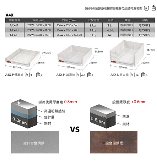 抽屜-P抽 外徑 262寬 X 356深 X 39.5高 mm
